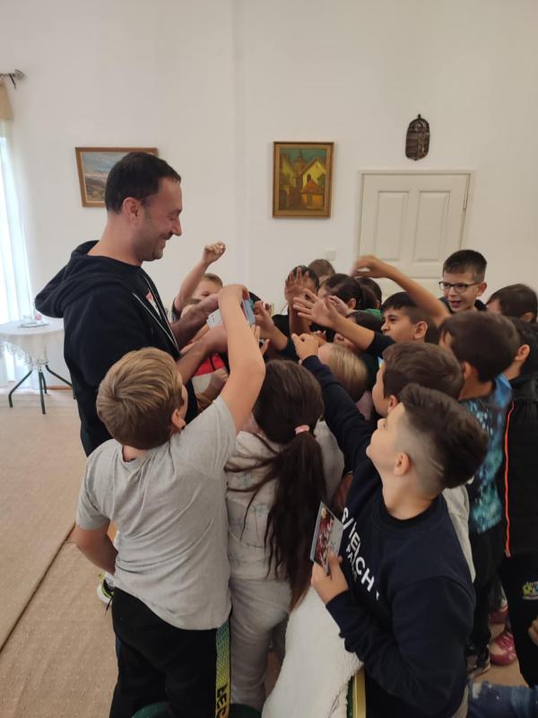 A magyar népmese napja alkalmából 2025. szeptember 30-án, a 4.és 5. évfolyam napközis tanulói író- olvasó találkozón vettek részt a Városi Könyvtárban, ahol Vig Balázzsal és könyveivel ismerkedhettek meg. A gyerekek nagyon jól érezték magukat, valamennyien aktívan részt vettek a feladatokban is.