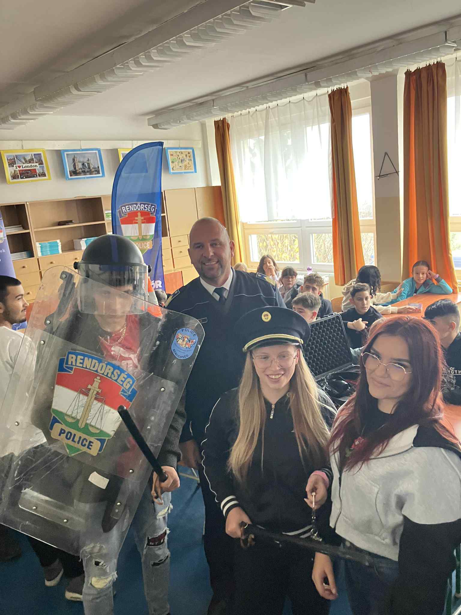 A program részeként rendőrségi bemutatót is láthattunk, ahol szolgálati kutyák mutatták meg, milyen ügyesek a munkájukban, valamint megismerkedhettünk a rendőrségi felszerelésekkel is.